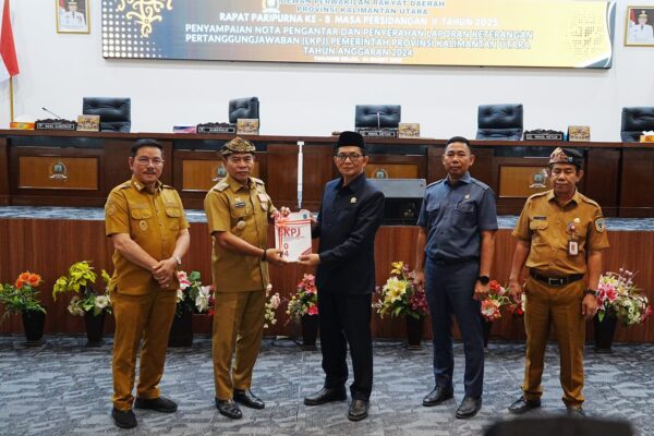 TANJUNG SELOR – Gubernur Kalimantan Utara (Kaltara), Zainal A Paliwang menyampaikan nota pengantar dan menyerahkan Laporan Keterangan Pertanggungjawaban (LKPj) Pemerintah provinsi (Pemprov) Kaltara ke legislatif pada Senin (24/3/2025).