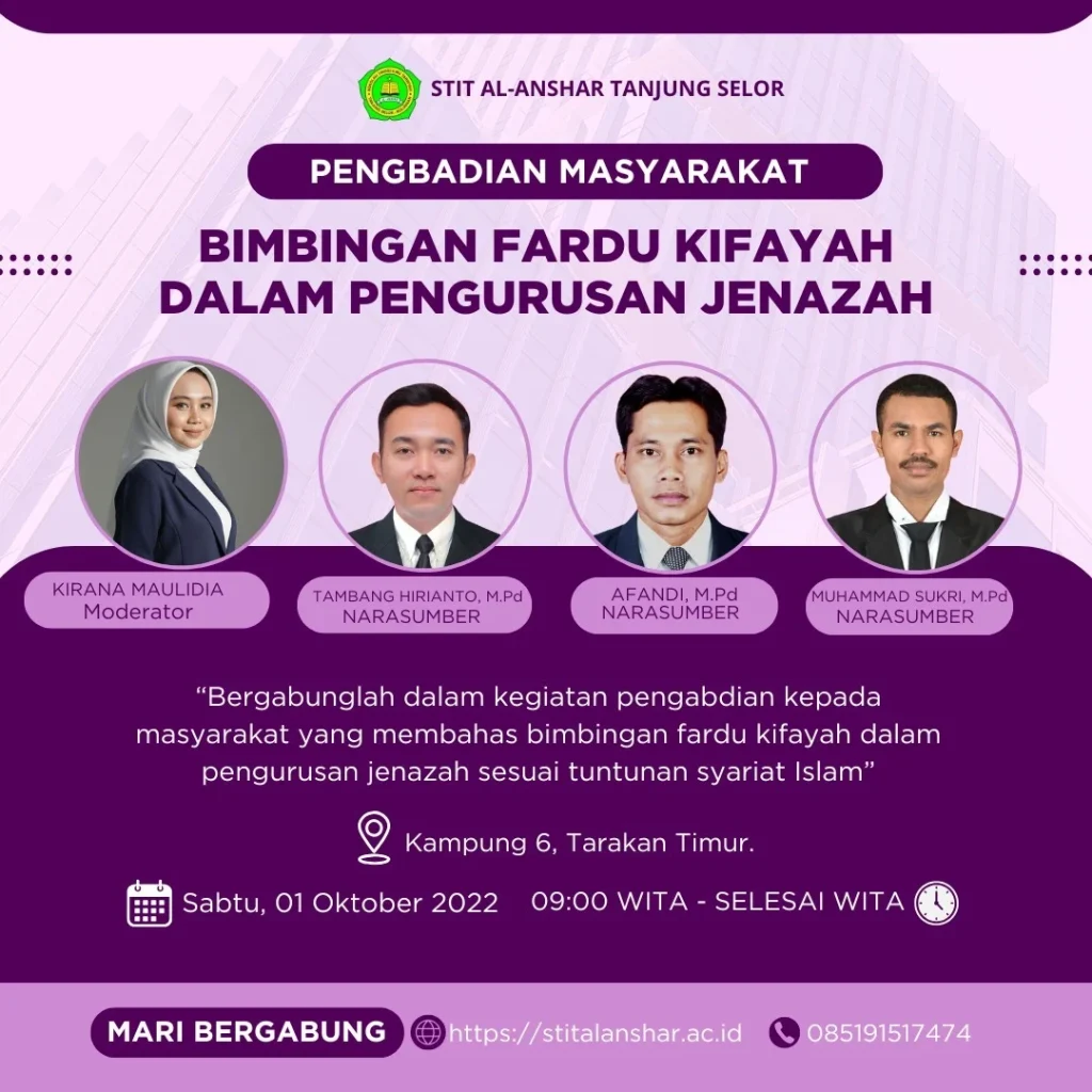 TARAKAN – Kegiatan Pengabdian kepada Masyarakat berupa Bimbingan Fardu Kifayah dalam Pengurusan Jenazah telah dilaksanakan sebagai bentuk kontribusi dosen dalam meningkatkan pemahaman dan keterampilan keagamaan masyarakat di sekitar.